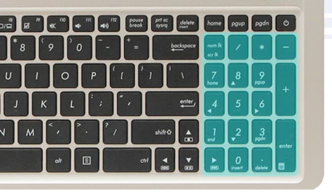 Cũng như những chiếc laptop có màn hình 15.6 inch khác chiếc laptop a540l cũng được trang bị bàn phím phụ-phím số (number pad) bên tay phải, một thuận tiện cho bạn nào hay học tập và làm việc với con số như kế toán, hay giáo viên nhập điểm, nhập liệu.
