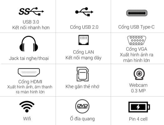 –Kết nối của máy – tích hợp cổng USB Type-C: